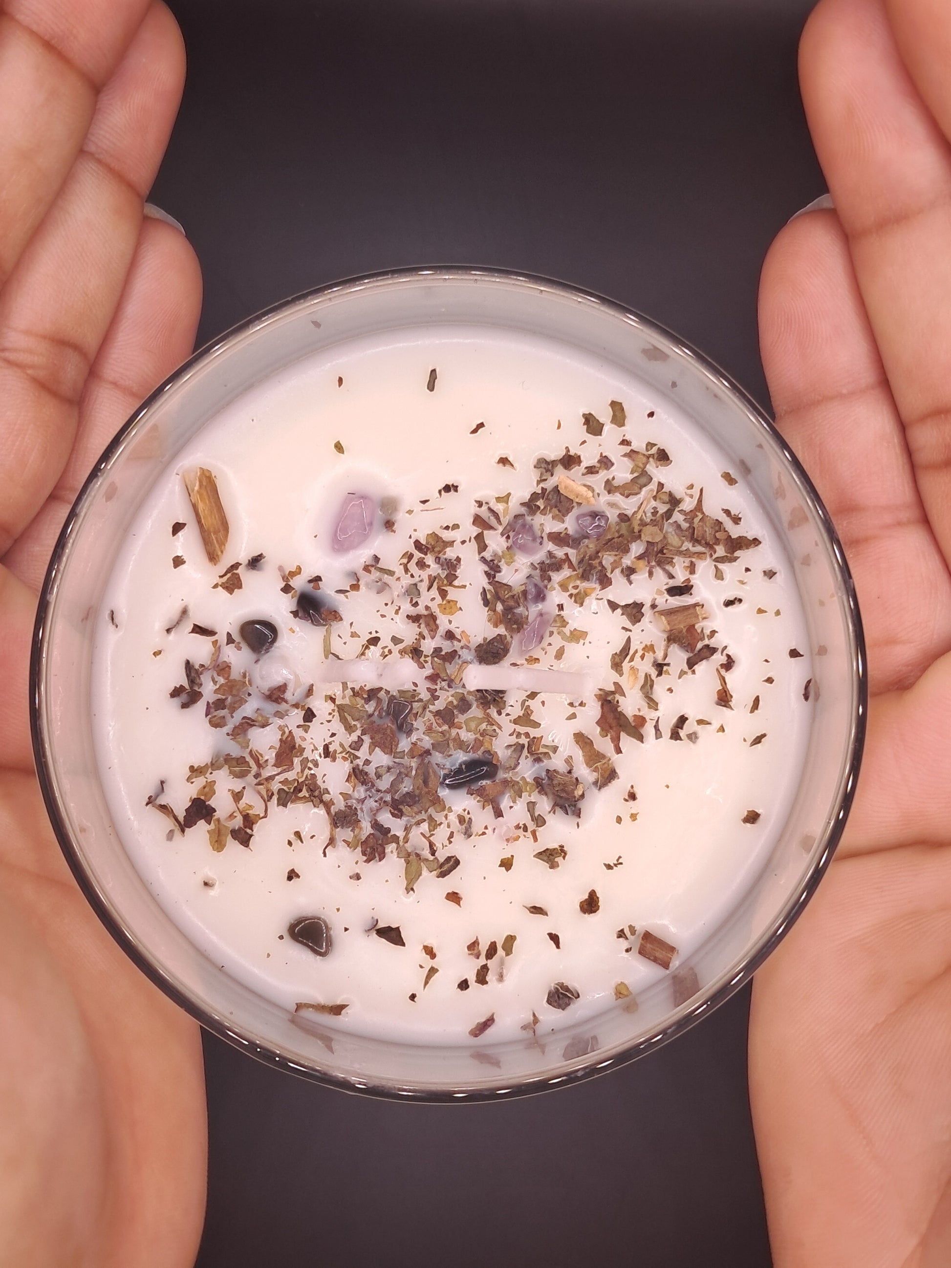 8oz Soy Wax. Made with herbs and crystals