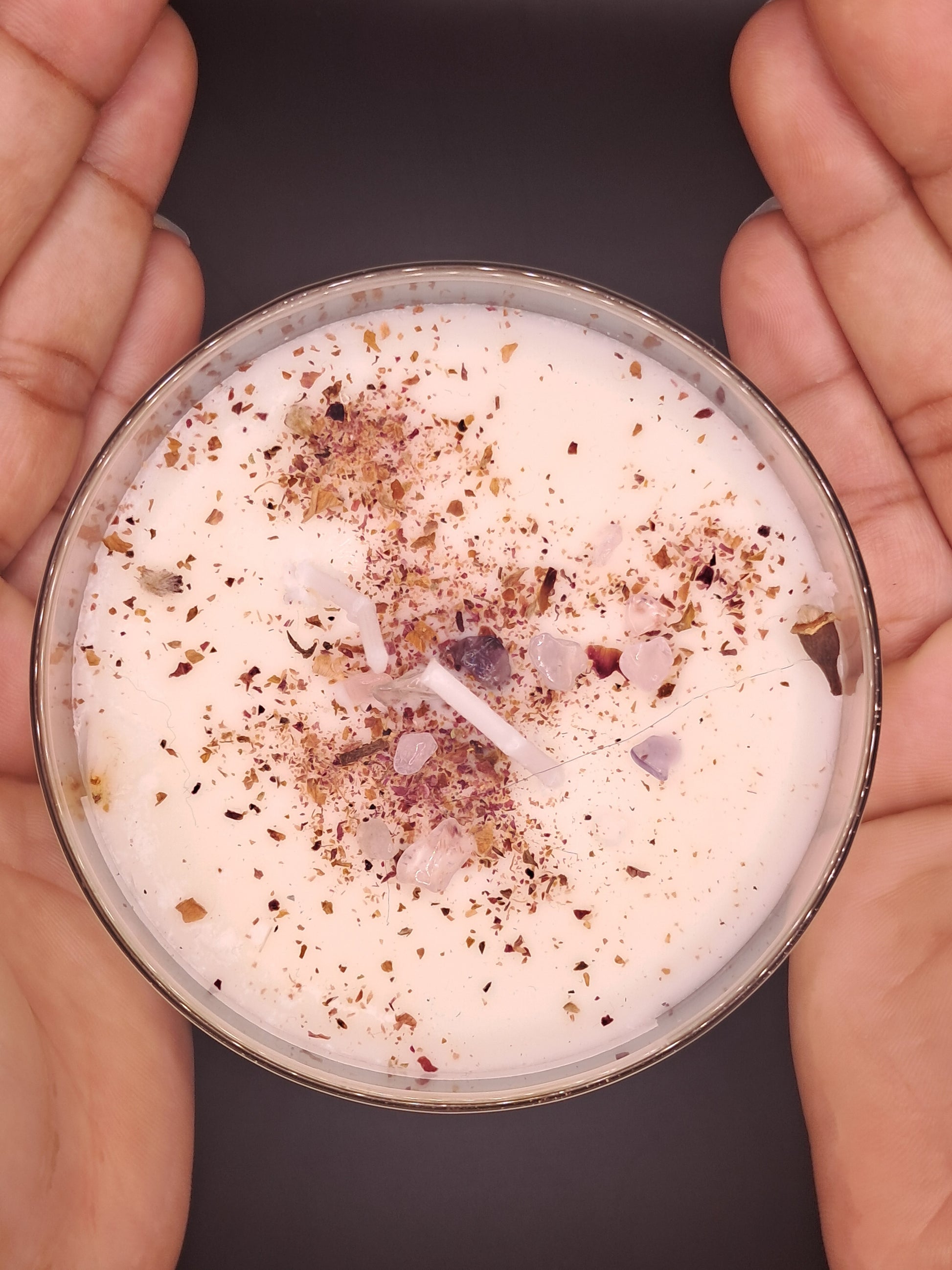 8oz Soy Wax Candle. Made with Herbs and Crystals